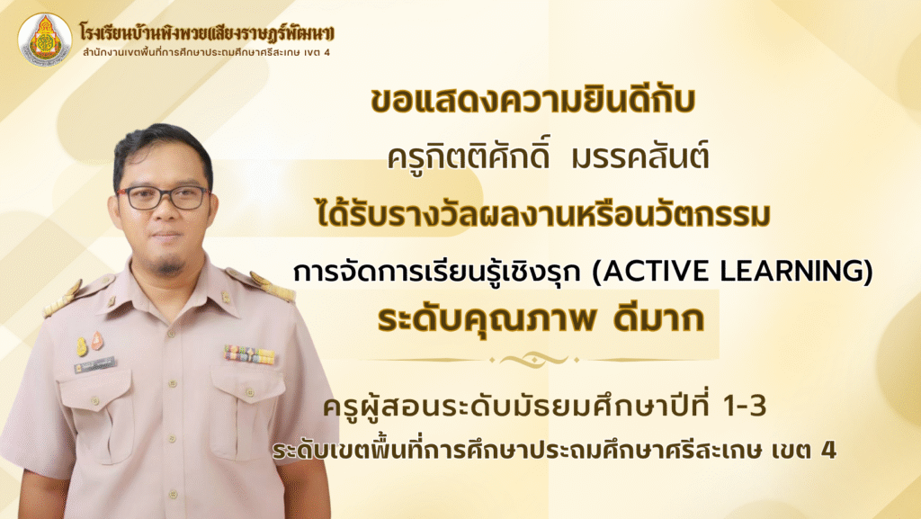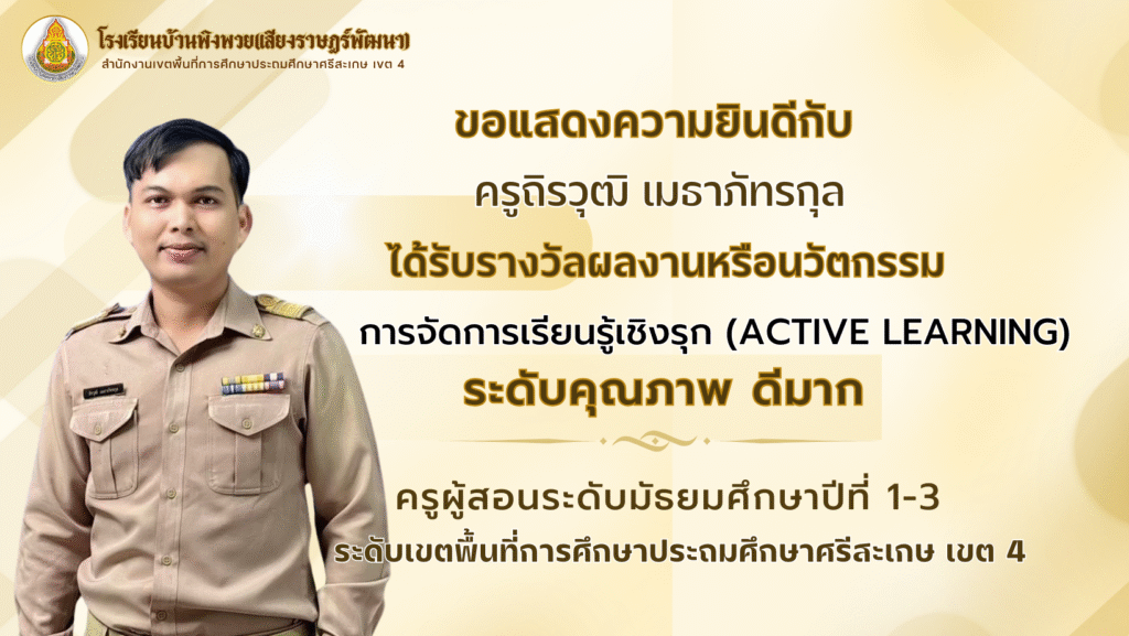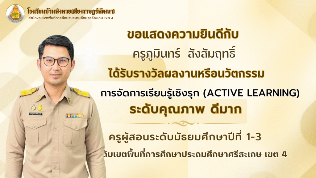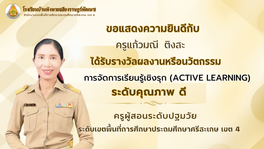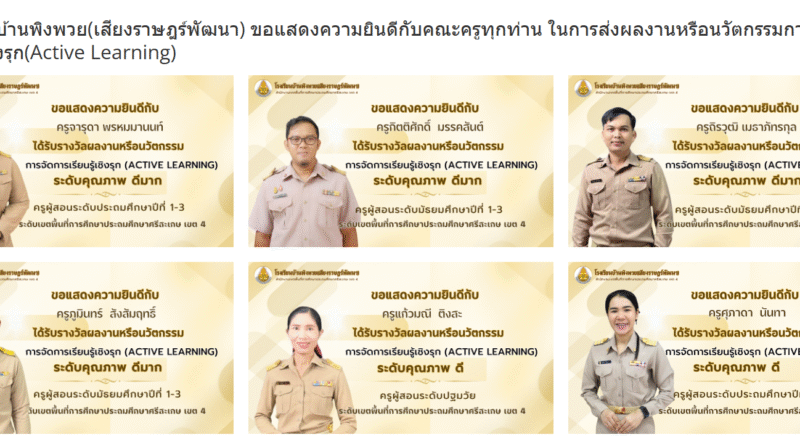 ผลงานครู โรงเรียนบ้านพิงพวย(เสียงราษฎร์พัฒนา) ขอแสดงความยินดีกับคณะครูทุกท่าน ในการส่งผลงานหรือนวัตกรรมการจัดการเรียนรู้เชิงรุก(Active Learning) August 28, 2025 pumin sangsamrit
